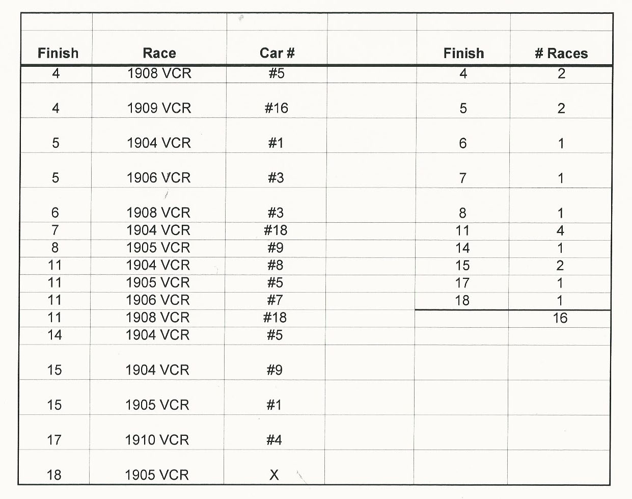 The highest finish of the 16 Vanderbilt Cup Race Mercedes was fourth (1908 and 1909).