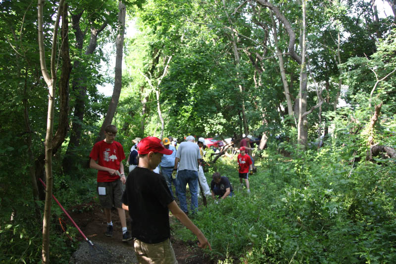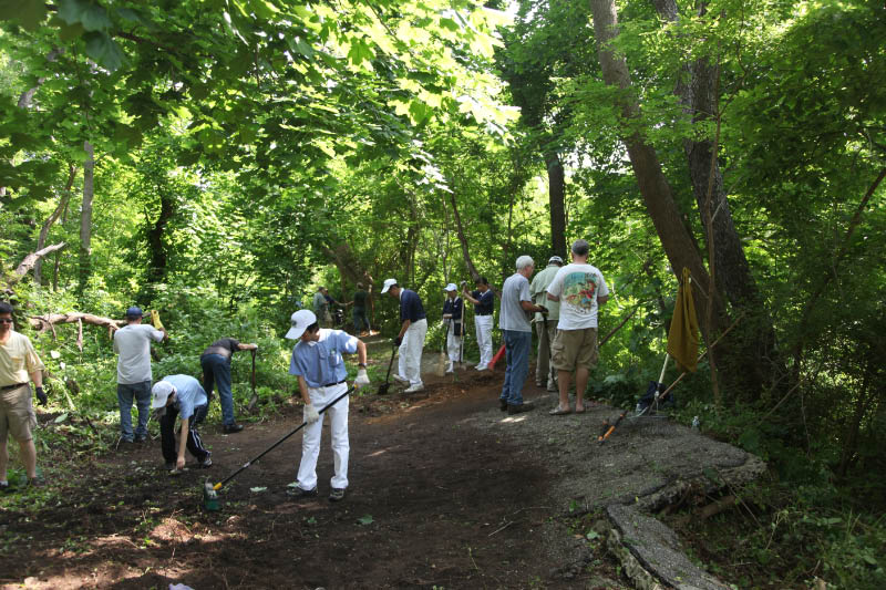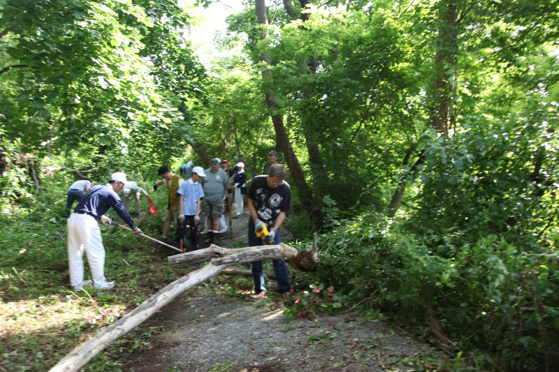 Forty-Two people from the Long Island Motor Parkway Preservation Society, the Bethpage community, Boy Scout Troop 604 from Bethpage and the Long Island Branch of the Tzu Chi Foundation came together on Saturday to clean-up the historic Deadman's Curve.