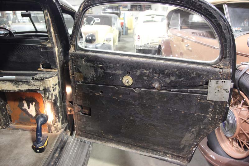 This condition has existed for at least 35 + years as I first saw it in this state when the car was in storage at the Long Island Automotive Museum in Southampton, N.Y.. At that time the car was in a state that would it would not have required a restoration, except for the hinges. The condition of the paint, plating, and upholstery were good enough to preserve, that is not the case now.