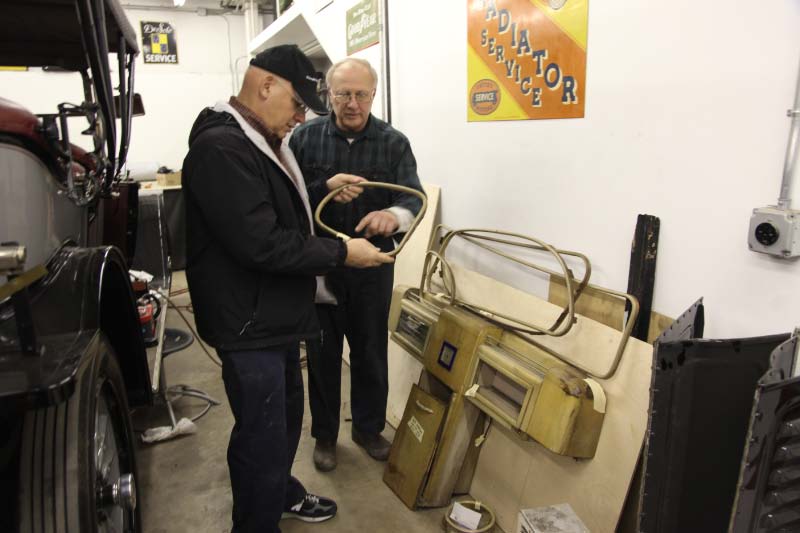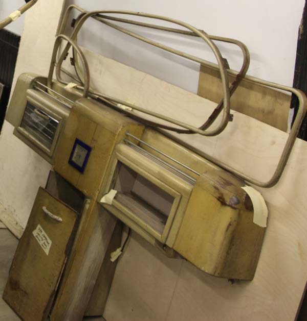 The right top corner of the division panel decorative woodwork that has been removed shows a dark area where the finish has been worn away. This makes sense as the car when parked at the curb would see most people enter from the right side and automatically place their hand on that edge to steady themselves as they entered the car before they sat down in the back seat.