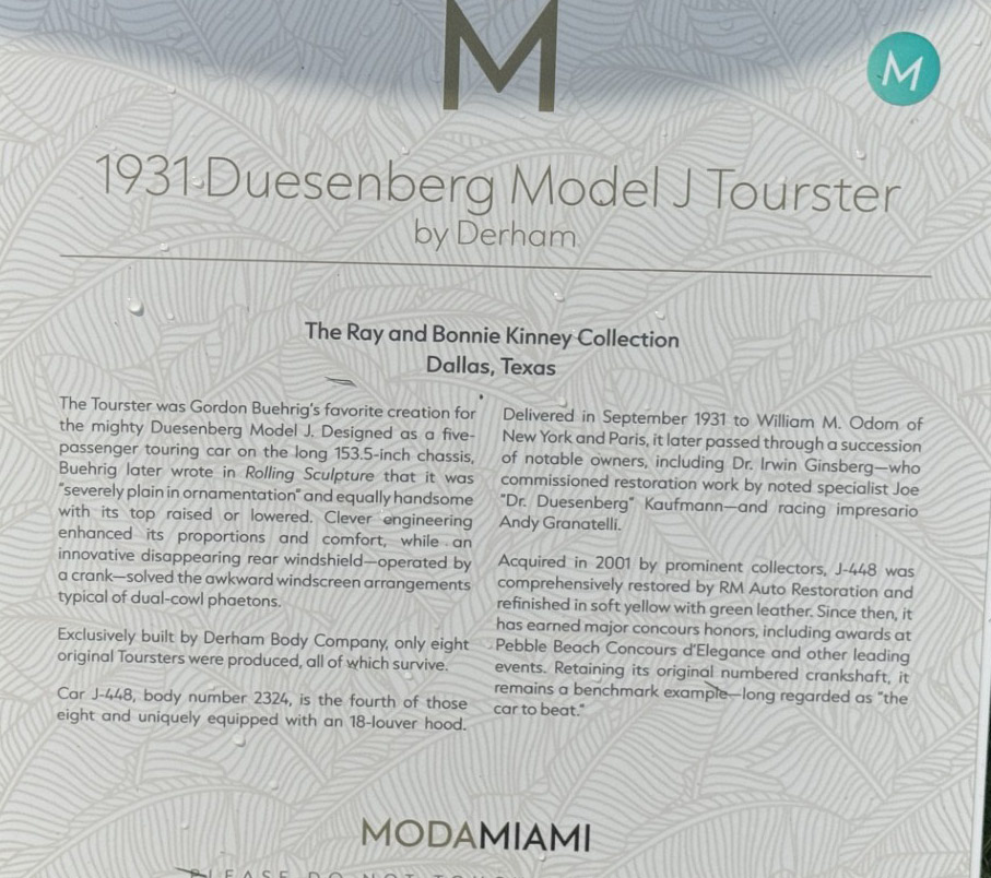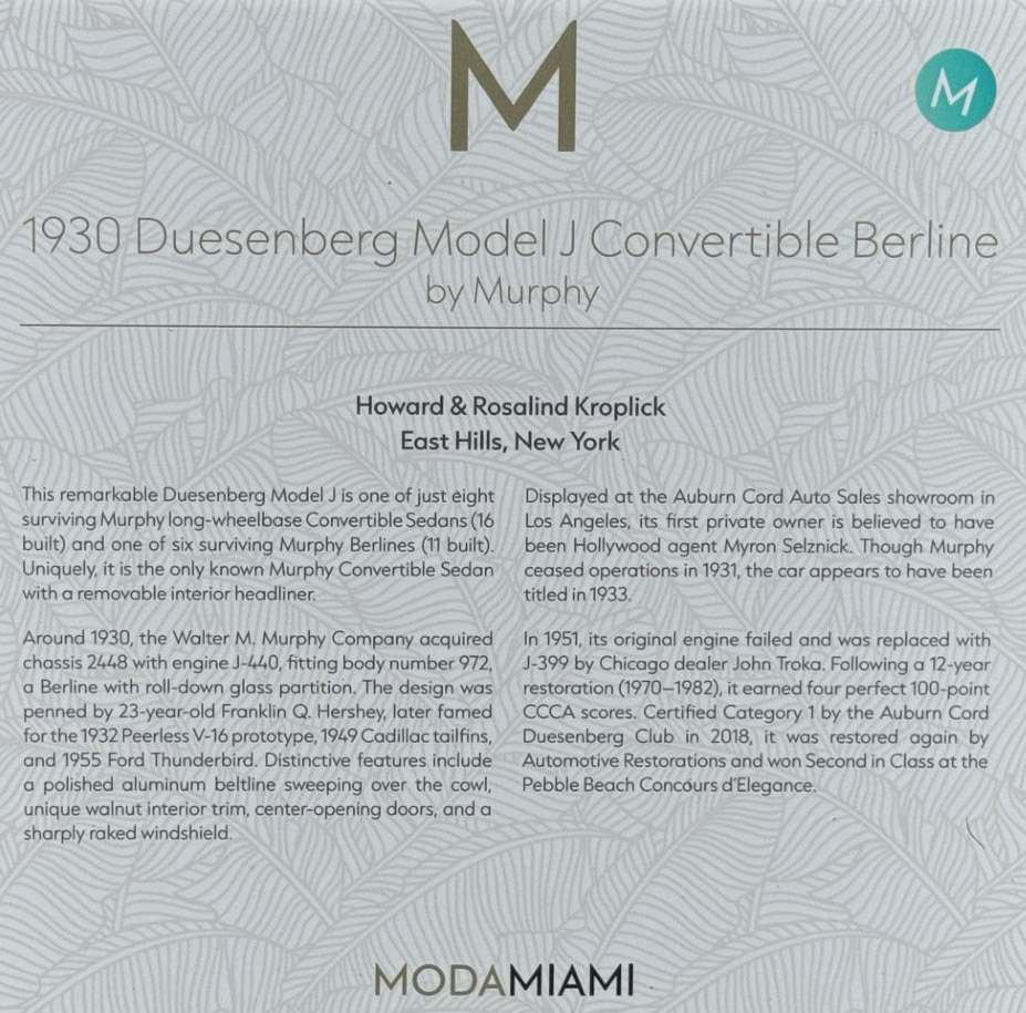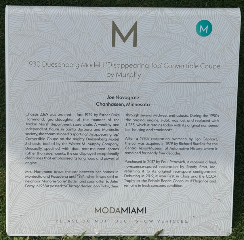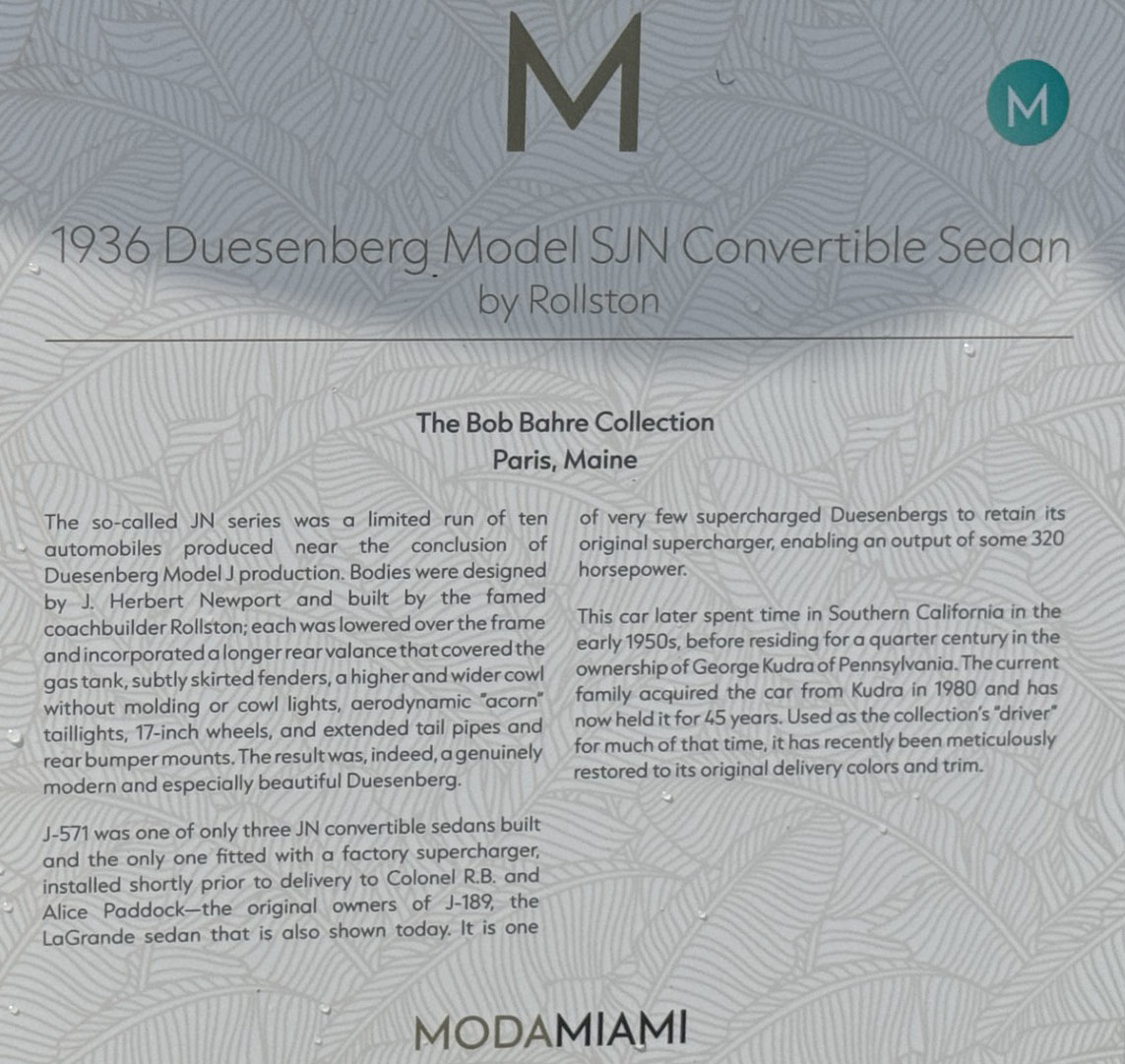The 1930 Duesenberg Model J Murphy Convertible Sedan Berline #2448 J-399 is at ModaMiami this weekend.