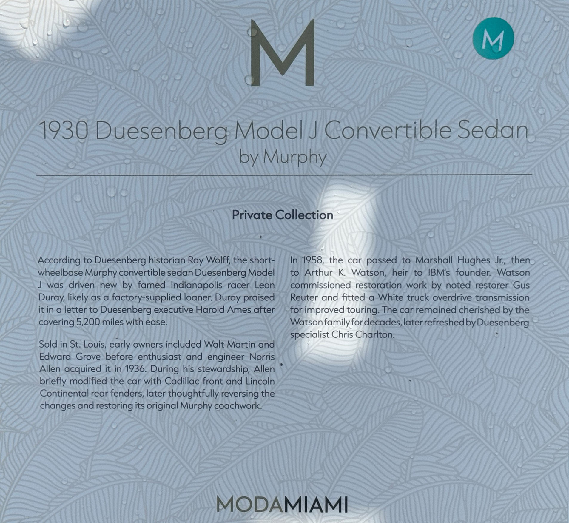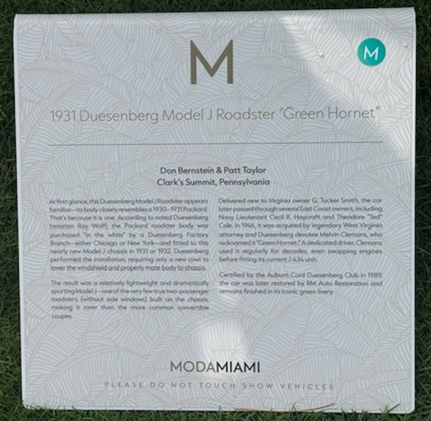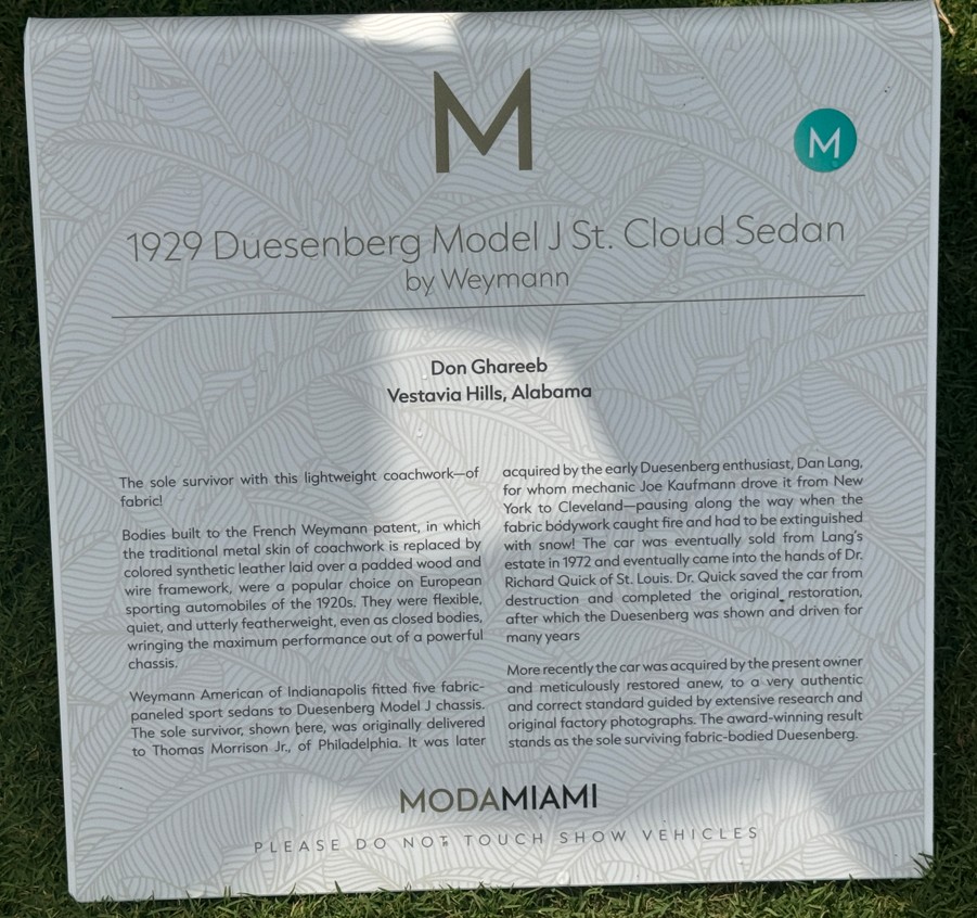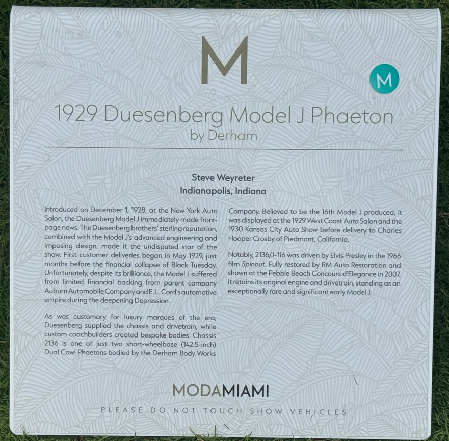 The 1930 Duesenberg Model J Murphy Convertible Sedan Berline #2448 J-399 is at ModaMiami this weekend.