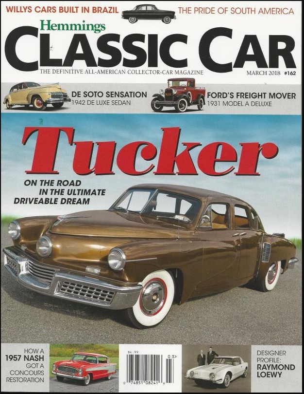 Tucker 1044 is featured on the cover of the March 2018 issue of Hemmings Classic Car. Within the issue, executive editor Richard Lentinello describes his "most historically significant" riding experience and David Conwill provides a wonderful six-page article supplemented with Richard's amazing images.