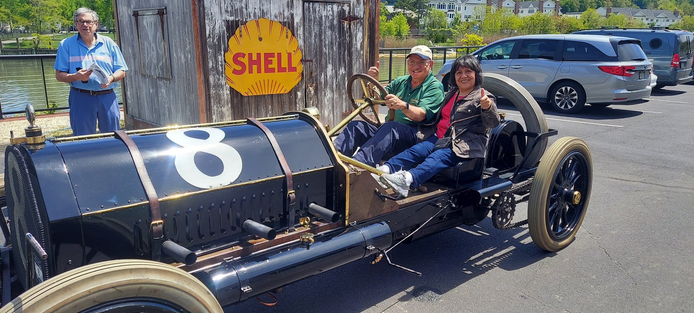 Smiles, thumb's up and rides in the 1909 ALCO Black Beast