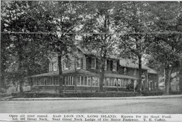 In the 1920s, the hotel was called the Red Lion Inn promoting that it was "Near the Great Neck Lodge of the Motor Parkway."