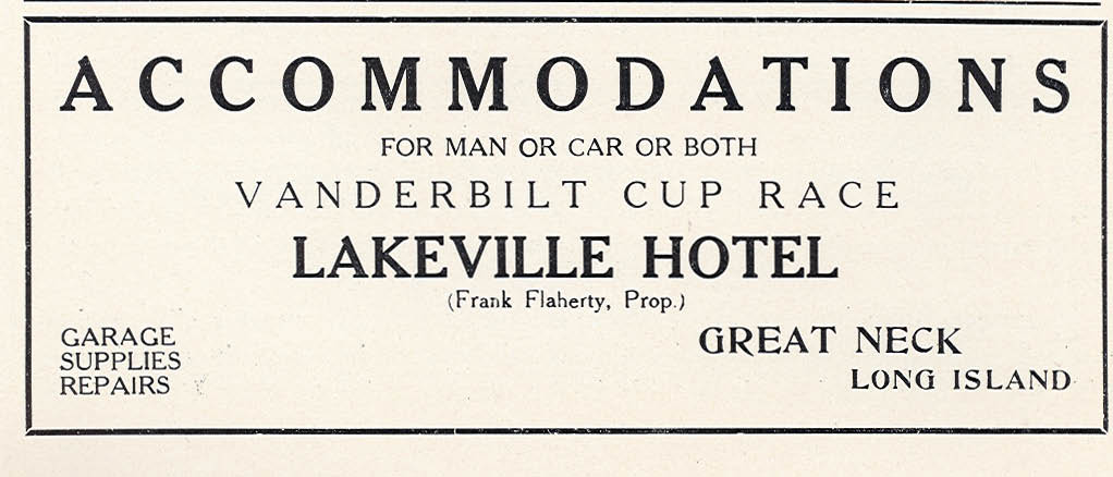 On the courses for both the 1905 and 1906 Vanderbilt Cup Races, the Lakeville Hotel was a great place to catch the action.