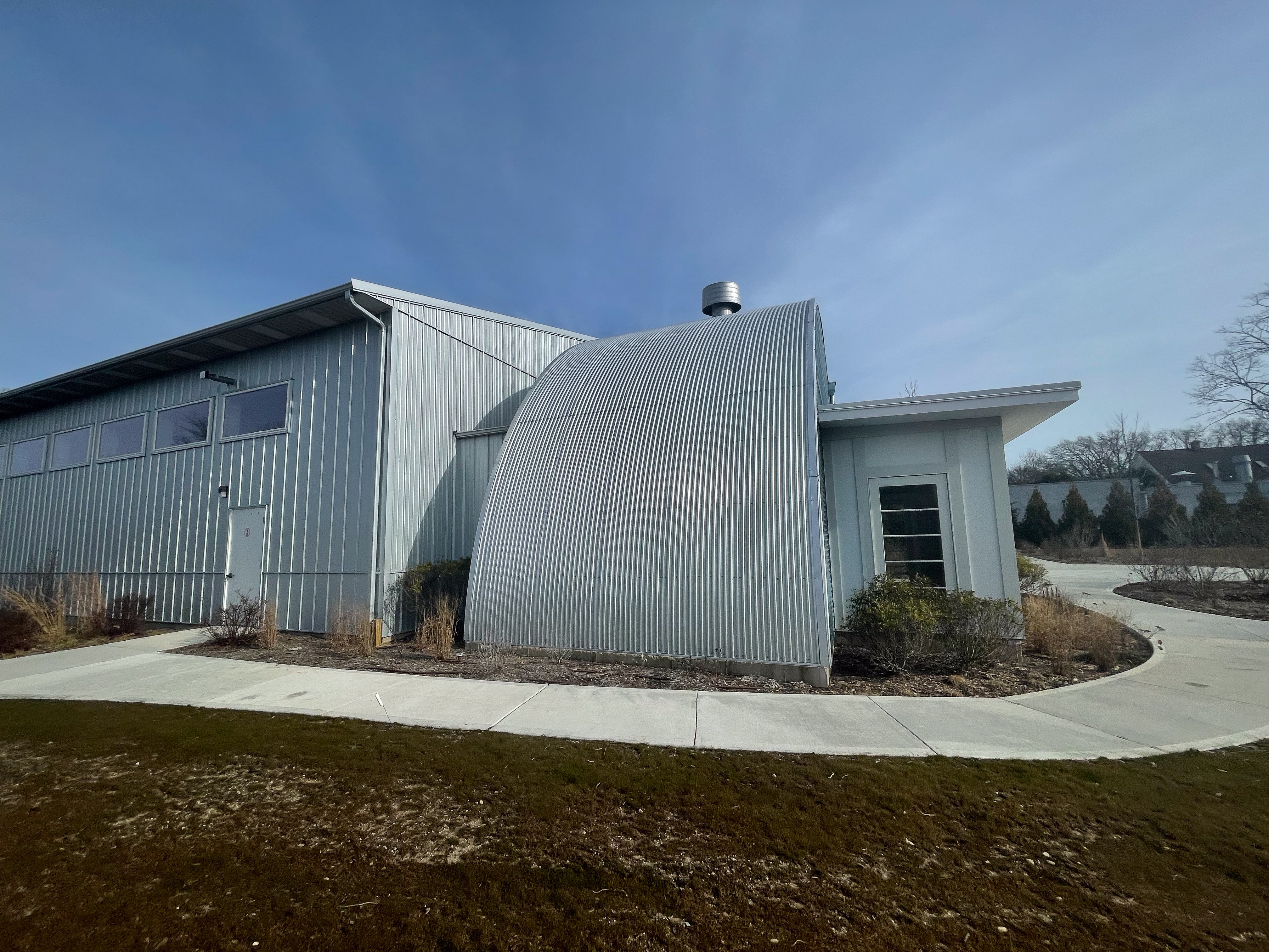 Skip said his original intent was to restore the original Clark Quonset huts but was informed that they were far too gone and would need to be demolished. Skip did the next best thing and paid tribute to the museum and Clark by fashioning the facade of the new building to replicate the look and feel of the old huts.