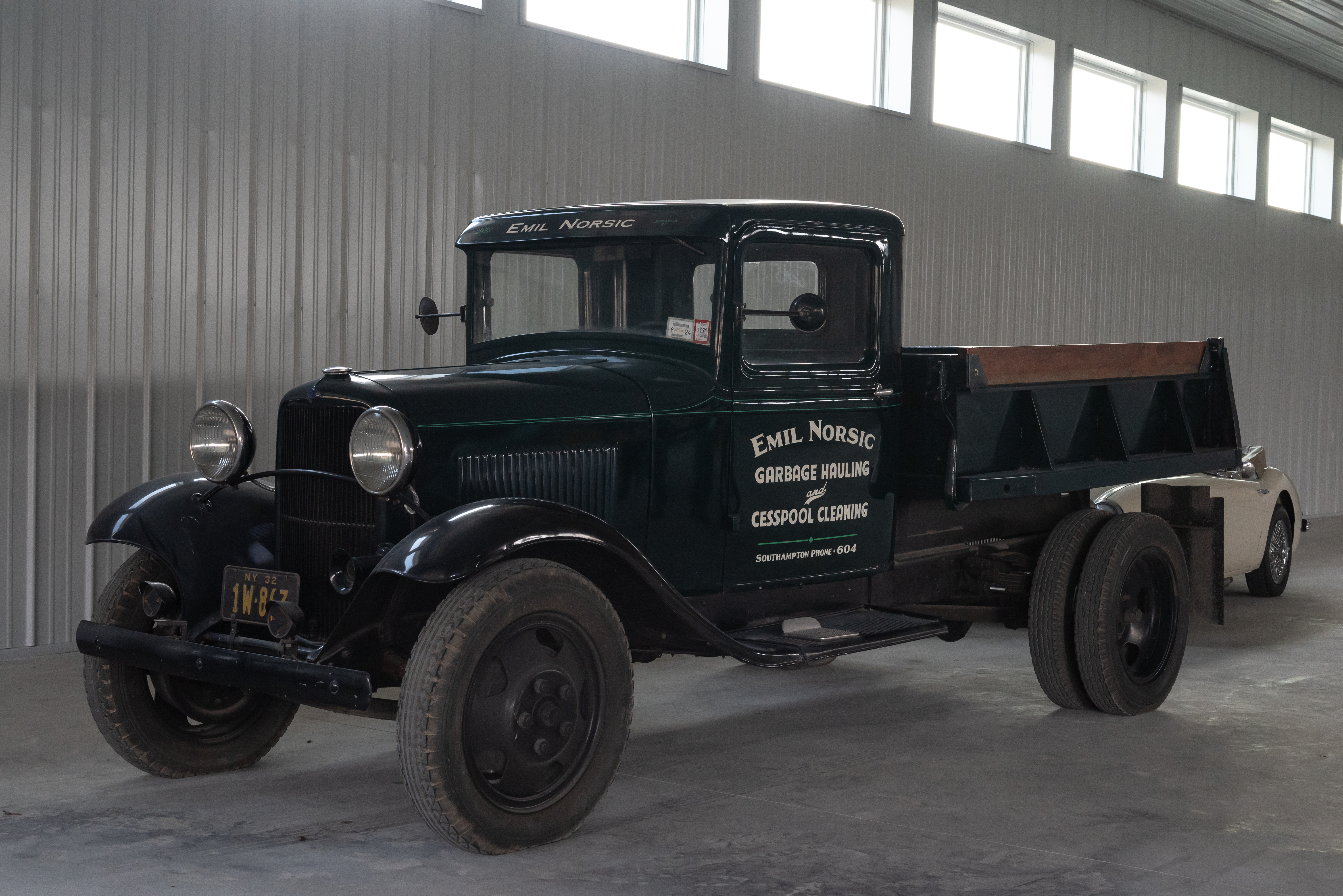 Since the building is only recently completed and not yet in use, for now, the original Emil Norsic & Son 1932 Ford sits quietly inside.