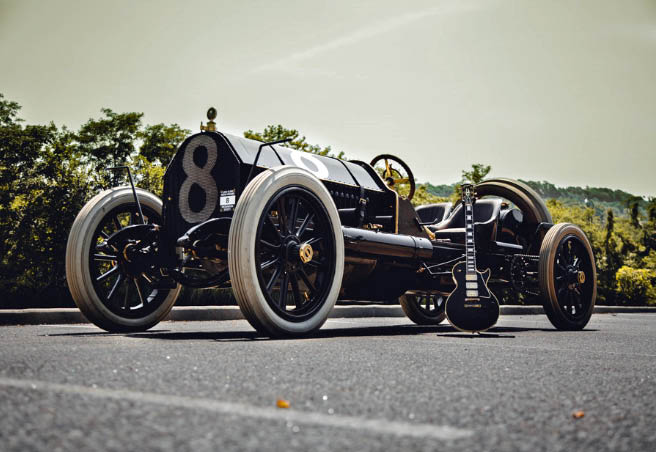 Sometimes good things must come to their ends, and the Black Beast was retired in the years preceding World War I, seldom seen or heard from until being sold to a collector in the 1930s where it lived in a barn. That collector sold the Black Beast to vintage car historian Joel Finn in 1968, who put some massive restoration work into it before selling the car in 1975 to casino tycoon Bill Harrah. Harrah had a collection of more than 1,500 cars, among which the Black Beast was probably feeling like a mere number…if it was capable of feeling. When Harrah sold the car in 1988, it bounced around Europe like some washed up movie star waiting for rediscovery, eventually winding up in France where, in 2008 it became available for sale and Kroplick was right there with a check. “I’ve followed that car for years,” he recalls. “When it was offered on the internet I jumped on it. A Belgian dealer was selling the car and I flew to Brussels to inspect the car before finalizing the deal.” It’s now parked at 55 Lumber Road in Roslyn, amidst the throbbing pulse of a neighboring dance studio and the brown sound tones of Friedman amps and a good Charvel.