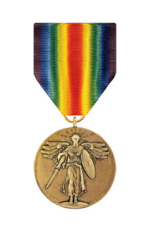 World War I Victory Medal: This medal was established in 1919 by an Act of Congress. The reverse side bears the inscription: The Great War for Civilization. Fourteen allied nations used the same ribbon, though each nation designed its own victory pendant.