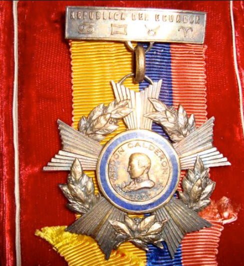 Order of Abdon Calderon: Established in 1904 by the government of Ecuador, the Order of Abdon Calderon was awarded for notable military service. It is named for a revolutionary hero who died during their war for independence.