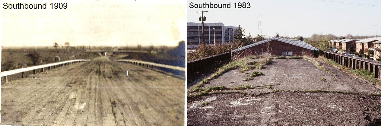 Frank Femenias observes that a 1909 photo on the Mineola LIRR Motor Parkway Bridge by surveyor Clinton Robertson was taken at the exact location of a 1983 photo by Ron Ridolph.