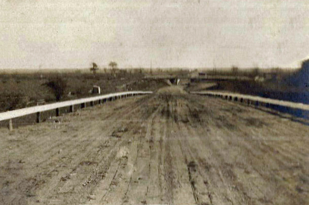 View looking south on the Mineola LIRR Bridge towards the Old Country Road Motor Parkway Bridge. Photo from the 1909 Clinton Robertson Album