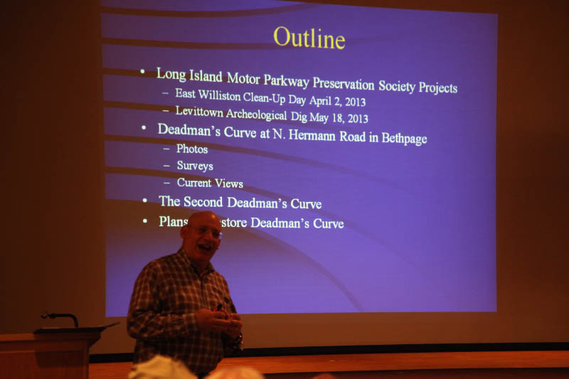 The Long Island Motor Parkway Preservation Society met on Thursday, May 23, 2013. A special presentation was made by Howard Kroplick and Al Velocci on Deadman's Curve and plans to restore it. Over 35 people enjoyed the program.