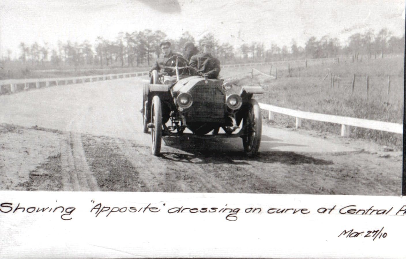 Then: 1910 A rare view of an early touring car on the Motor Parkway.