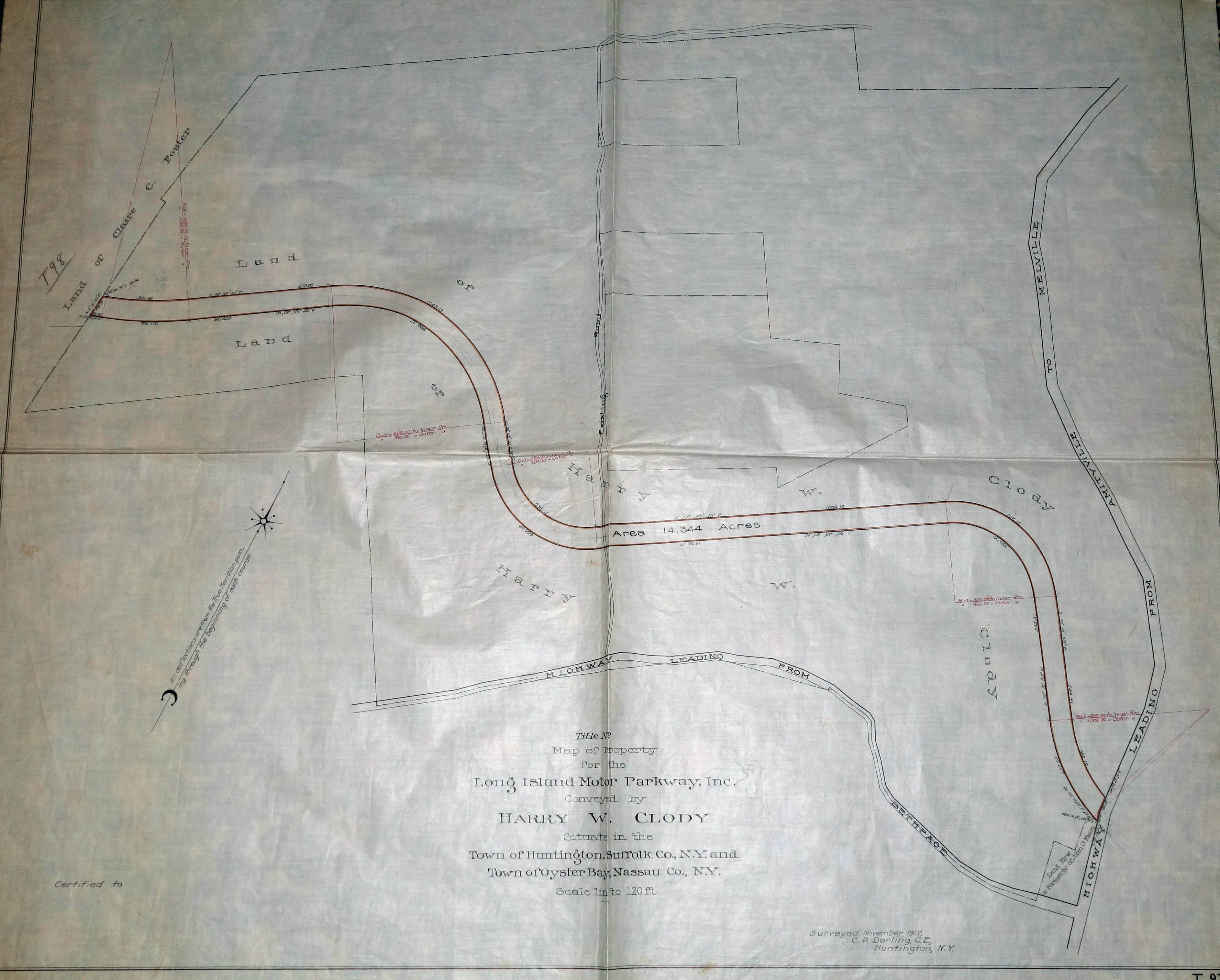 This survey of the Clody property was taken in November 1907 by C.P. Darling of Huntington