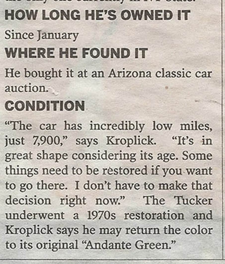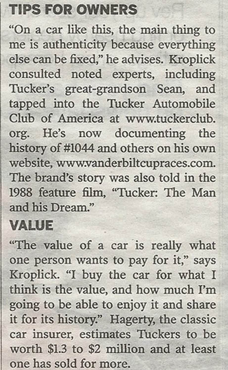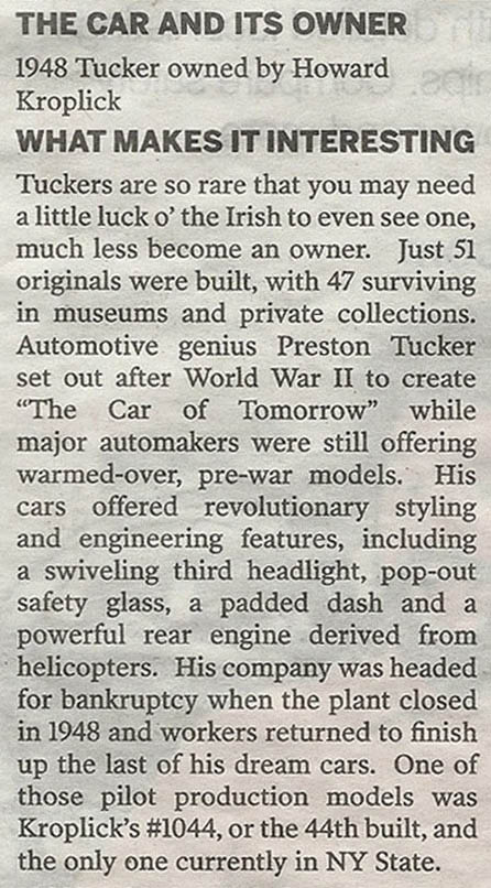 Tucker 1044 Featured in Newsday’s “In The Garage”