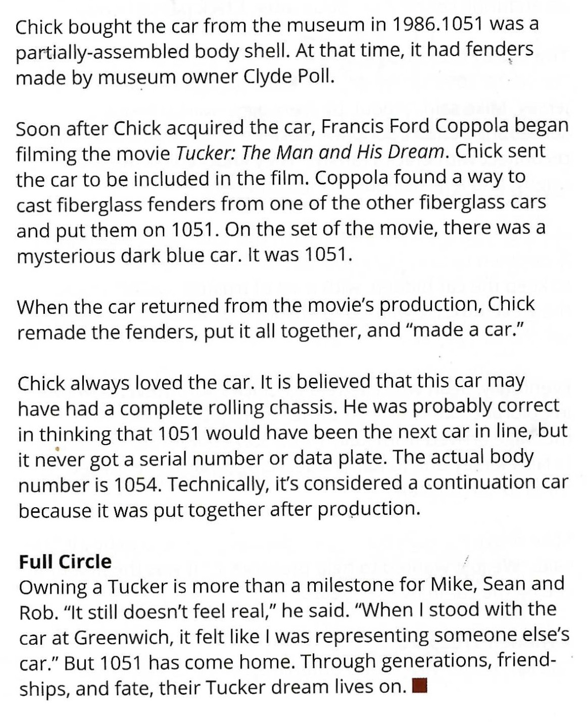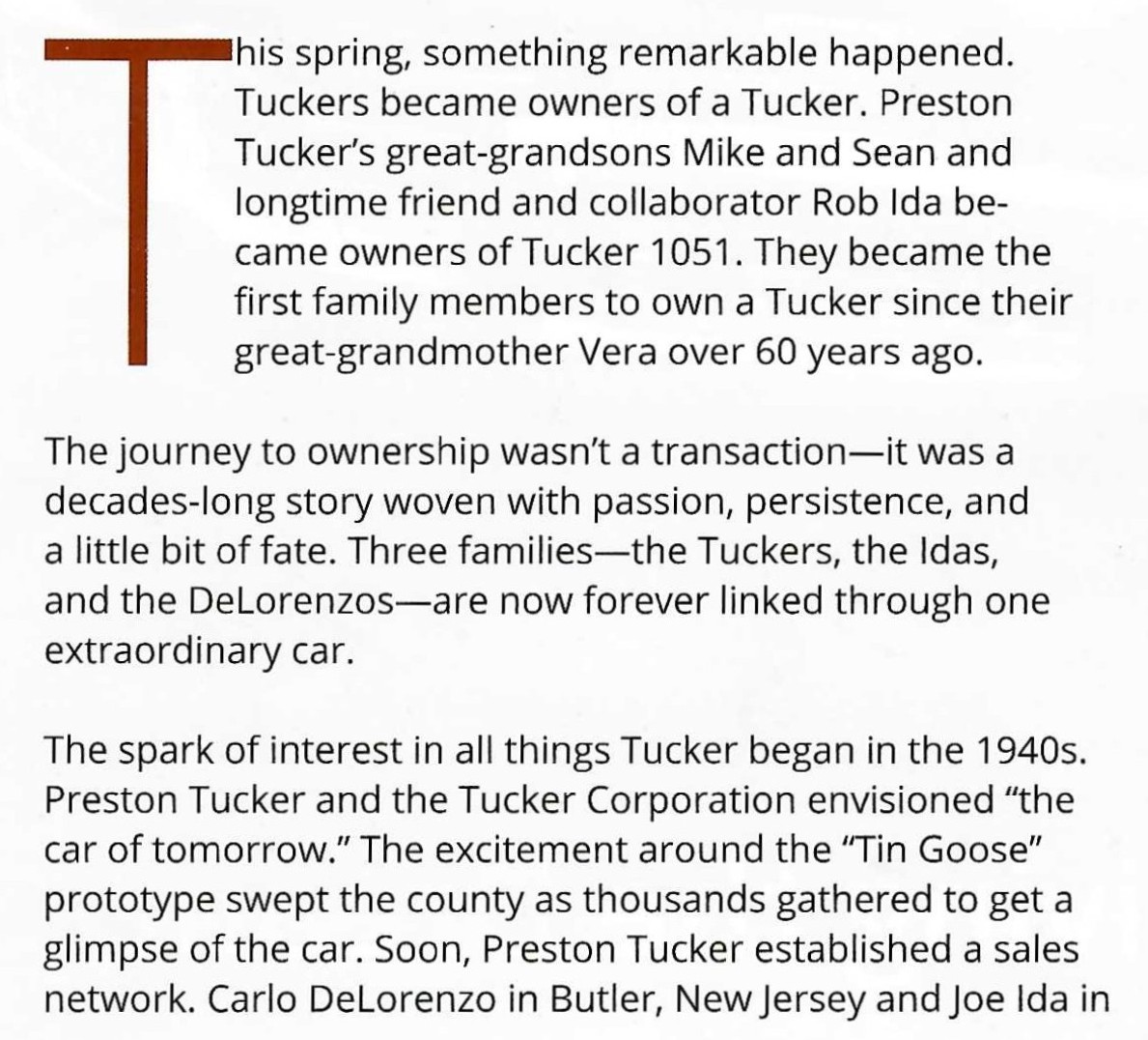 The latest issue of Tucker Topics (vol. 53/issue 1) delves into the acquisition of Tucker 1051 by Rob Ida and Sean and Mike Tucker.