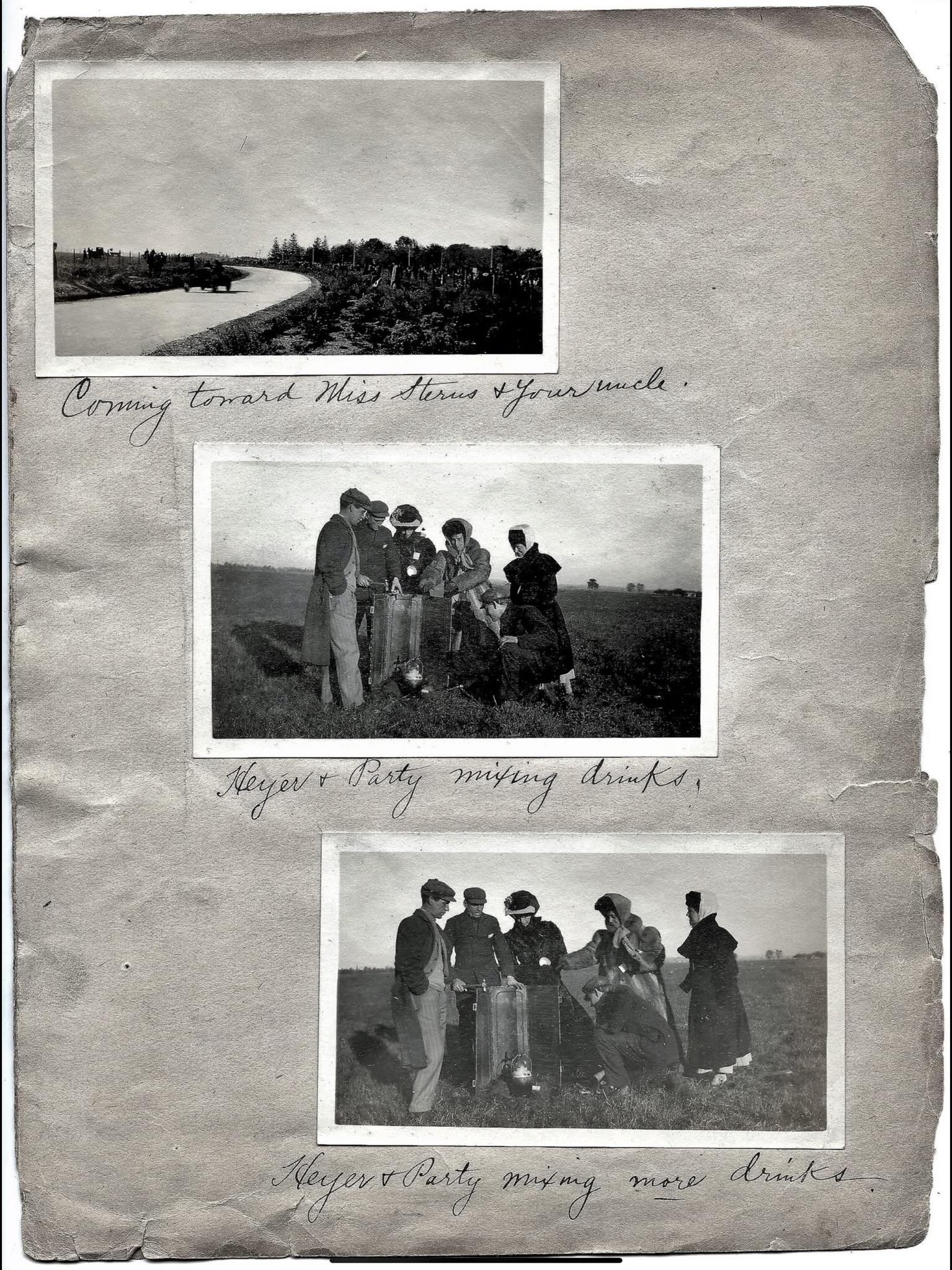 The third page has an unknown race photo at the top, and two other photos of Heyer's party.