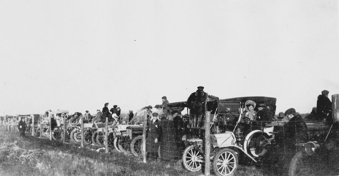 Being the consummate 'car guy', Arthur Heyer must have been impressed by this line of spectator cars, with Heyer captioning the photo;