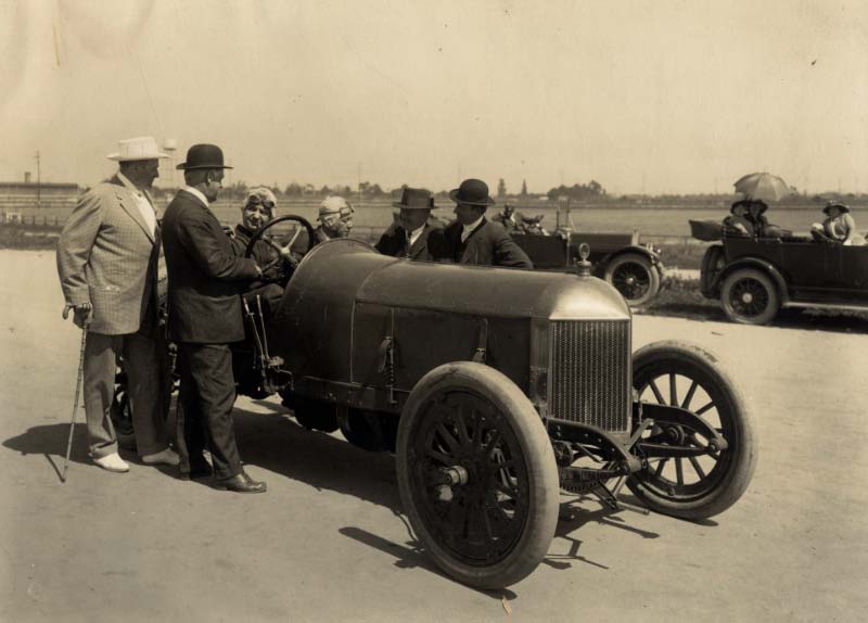 Despite a long racing career dating back to 1902, Barney Oldfield's first Vanderbilt Cup Race was the 1914 294-mile race held in Santa Monica. Wayne Carroll Petersen, the great great nephew of Barney Oldfield, has provided these photos of  Oldfield preparing for the Vanderbilt Cup Race.