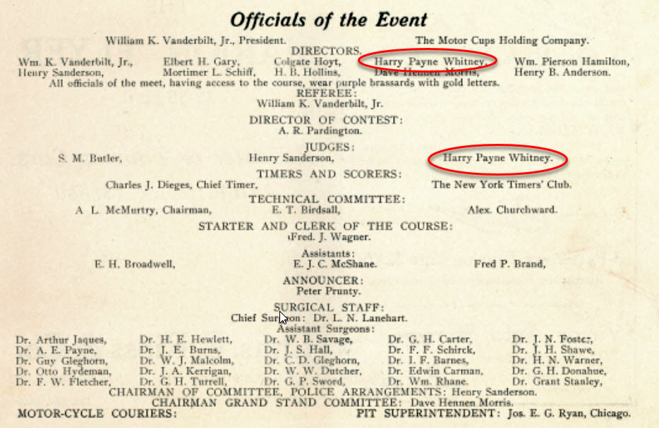 Harry (right) was a director and judge of the 1909 Vanderbilt Cup Race.