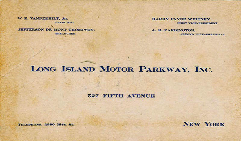 Harry Payne Whitney was the Motor Parkway's first "First Vice-President".
