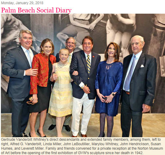 They convened to celebrate a retrospective exhibit Gertrude Vanderbilt Whitney Sculpture being shown at the Norton Museum of Art in West Palm Beach from January 25, 2018 to April 29, 2018.