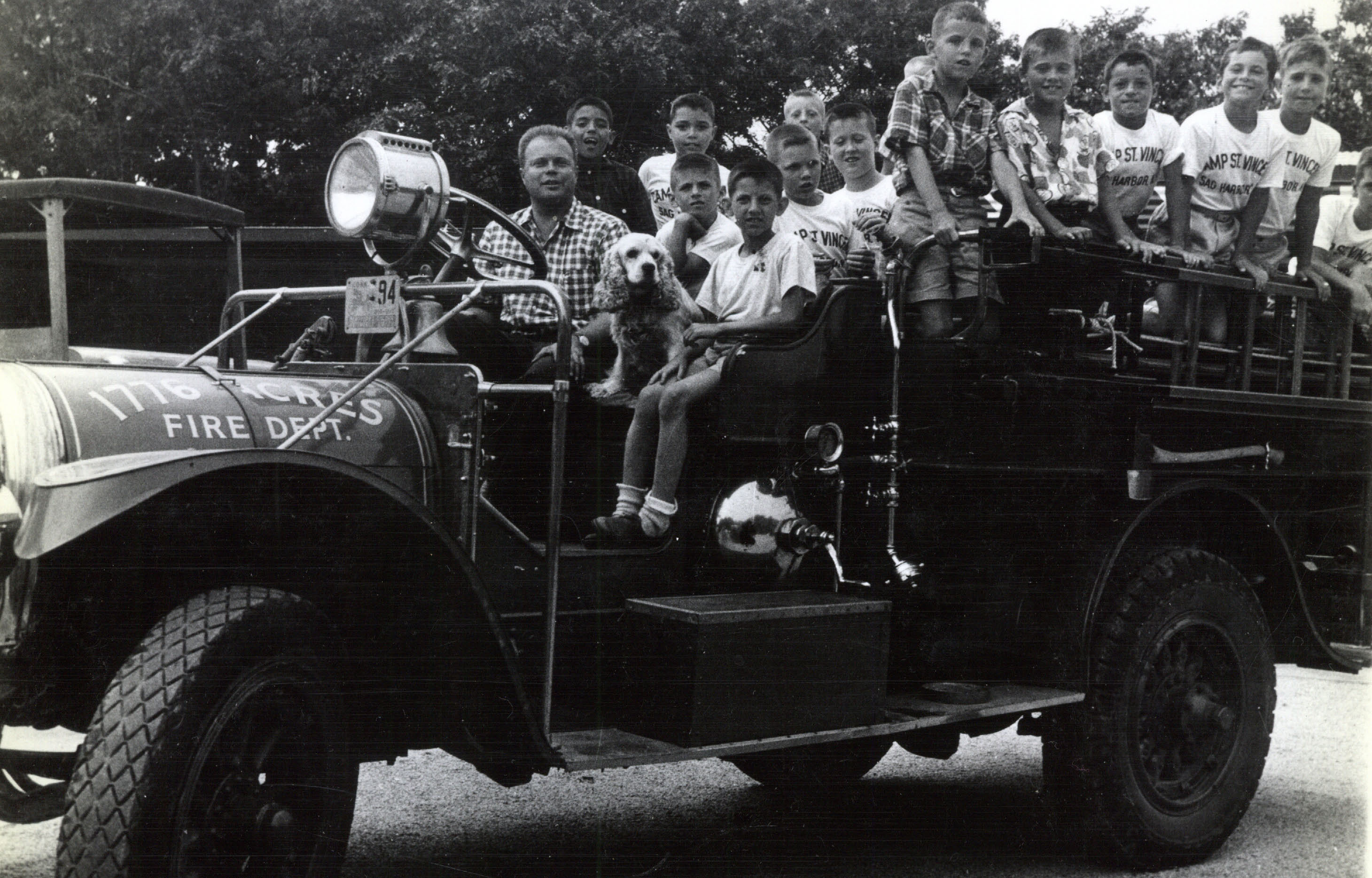 Drving the Shady Hollow Fire Truck with children from Camp St. Vincent in 1957