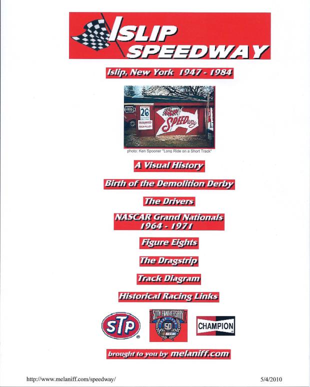 The Melaniff family have created this website dedicated to the Islip Speedway (1947-1984). Among the many gems on the website are: