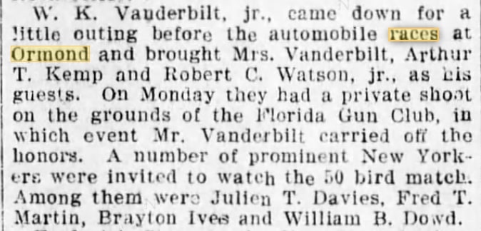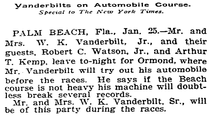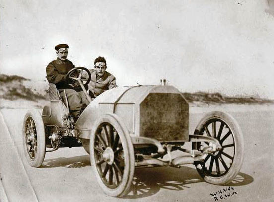 For many years, this well-known photo of William K. Vanderbilt Jr. from his land speed record setting day at Ormond Beach Florida in 1904 has hid a mystery. Who was Willie K.'s riding mechanician in the 90hp Mercedes within the photo? The only clue was a set of initials under Willie K.'s that read; 'R.C.W. Jr.'.
