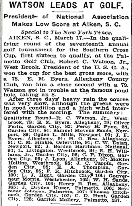 As mentioned by great-grandson David, R.C. Watson Jr. was a very skilled golfer among other sports as well and even worked his way up to becoming U.S. Golf Association President in 1913.
