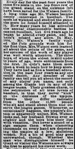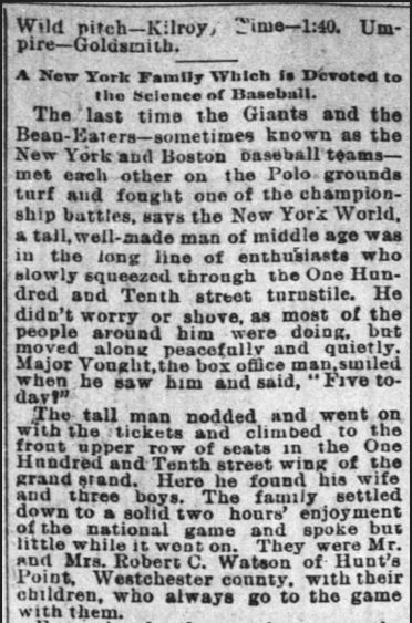 Long article on RCW Sr. and family attending all NY Giants baseball games at the Polo Grounds on the next 3 panels.