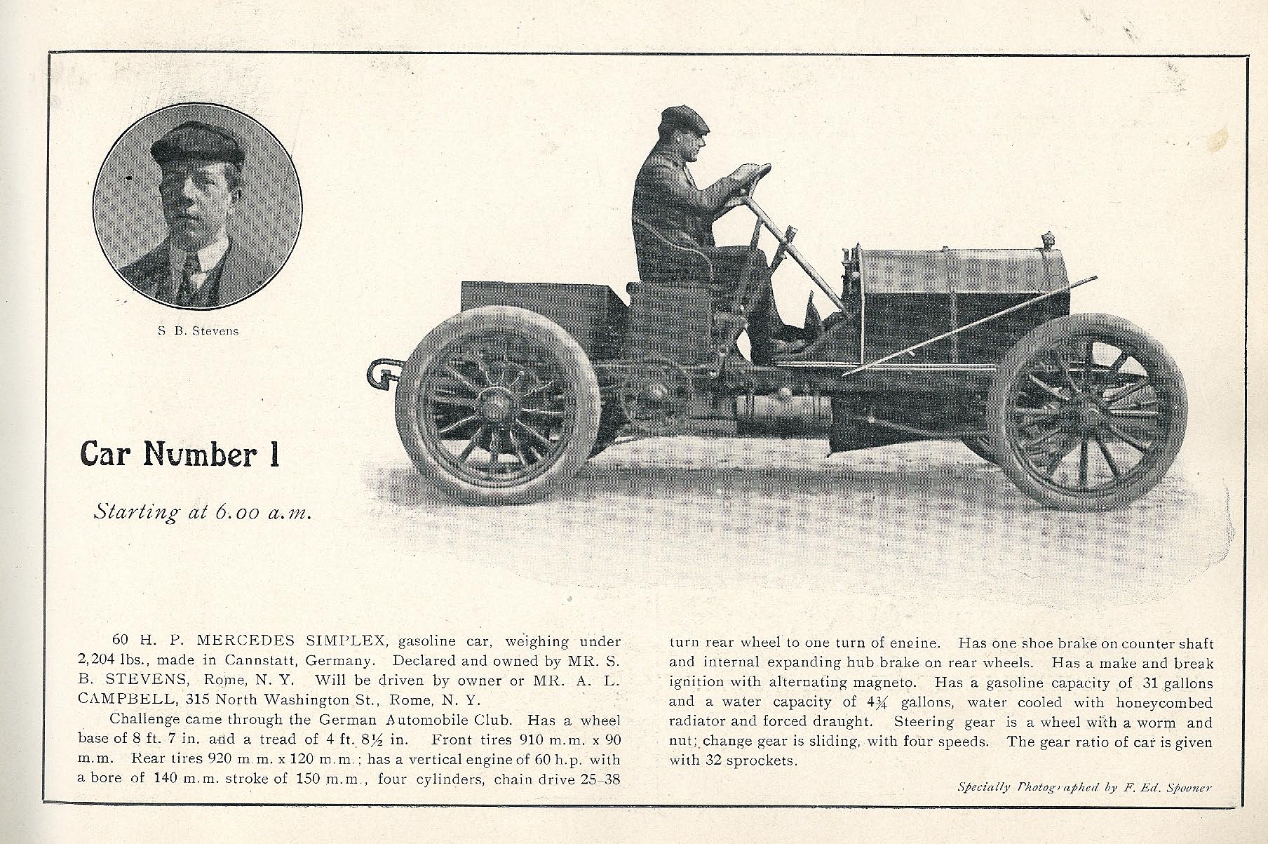#1 Mercedes (Germany) driven by Albert Campbell, 60 HP. Finished 5th- Running in Hicksville when race was called. Averaged 35 mph.