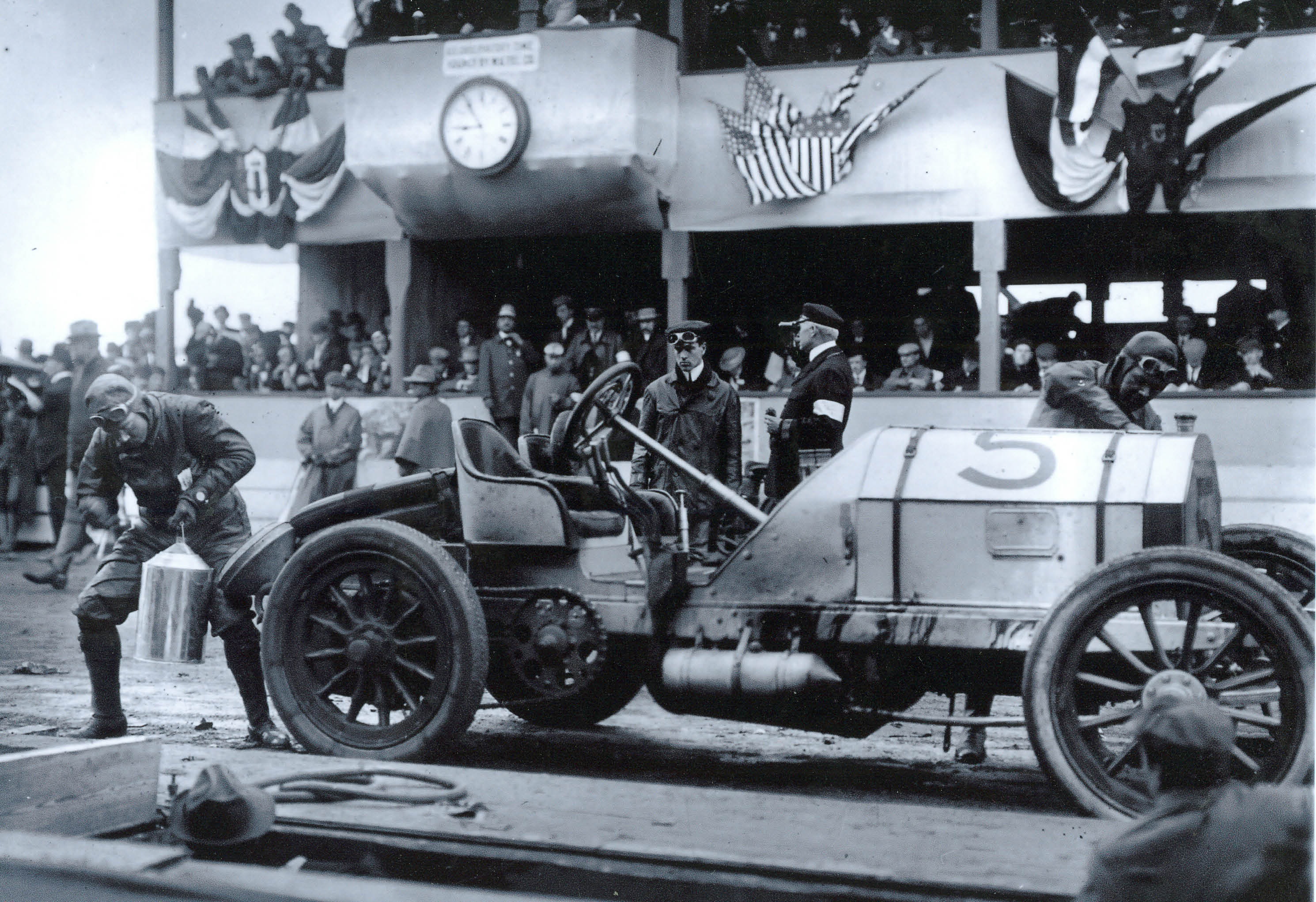 #5 Mercedes (Germany) driven by William Luttgen. 90 HP. Finished 4th. Car owned by William K. Vanderbilt Jr. Running in last lap when race was called.