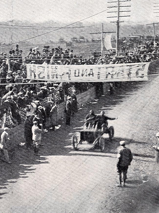 Hemery got off to a slow start, lapping at the back of the field before moving into third by lap 3. His closest competitor was the race’s defending champion, George Heath. Neither could come near the speed of Lancia, who lapped the entire field by lap 8. Heath on the Panhard ran in second place over Hemery in the Darracq with a margin of 3 minutes and 30 seconds separating them. Truly Lancia’s race to lose, he paid the consequences for an impetuous decision after stopping for fuel and tires at a Fiat repair station near Albertson. After a 16-minute delay the Italian was apparently impatient to return to the fray. Allowing his enthusiasm to overcome his judgment, he pulled onto the course in the face of a fast approaching Walter Christie. The inevitable collision destroyed the front-wheel drive Christie and damaged the Fiat so severely that Lancia was forced to stop again for repairs, ruining his chances for victory.
