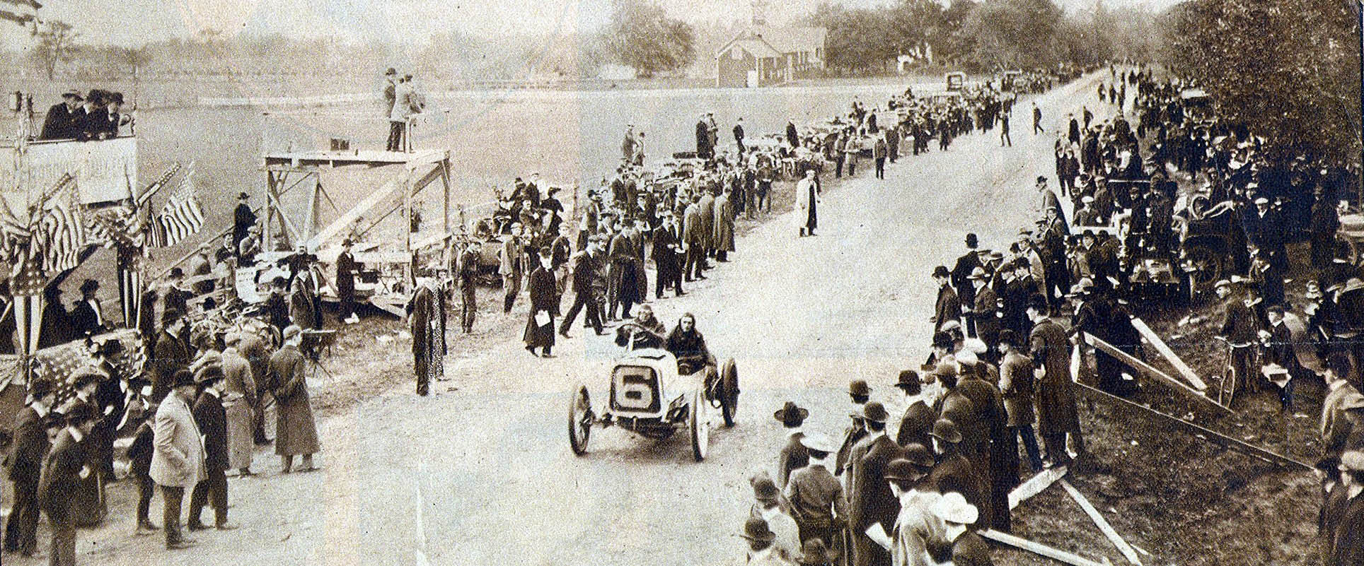 Herb Lytle and the #12 Pope-Toledo at the starting line. Although the car finished a disappointing ninth, it was one of the five cars selected to compete in the Vanderbilt Cup Race.