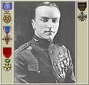 "Edward V. Rickenbacker, Colonel, specialist reserve, then first lieutenant, 94th Aero Squadron, Air Service, American Expeditionary Forces. For conspicuous gallantry and intrepidity above and beyond the call of duty in action against the enemy near Billy, France, 25 September 1918. While on a voluntary patrol over the lines Lieutenant. Rickenbacker attacked seven enemy planes (five type Fokker protecting two type Halberstadt photographic planes). Disregarding the odds against him he dived on them and shot down one of the Fokkers out of control. He then attacked one of the Halberstadts and sent it down also."