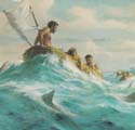During World War II, his experience and technical knowledge prompted his appointment as special representative of Henry L. Stimson, Secretary of War, to inspect air bases in the Pacific. As if to top it all off, larger-than-life, he survived an incredible life and death struggle in the middle of the Pacific Ocean. During a late 1942 tour of bases in the Pacific, the B-17 Rickenbacker was flying in ran out of fuel. The crew ditched the plane in the ocean, but in the confusion forgot the emergency rations. The eight men then spent 22 days on three rafts without food or water.