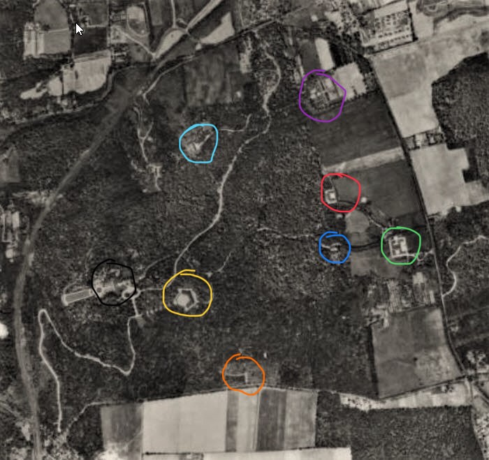 Yellow circle- Main Horse Stables/Auto Garages