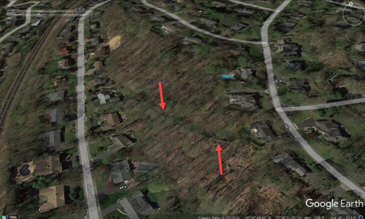 The probable poultry farm/Zion burial ground location today on the north side of Harbor Hill Road at the intersection with Chestnut Drive.