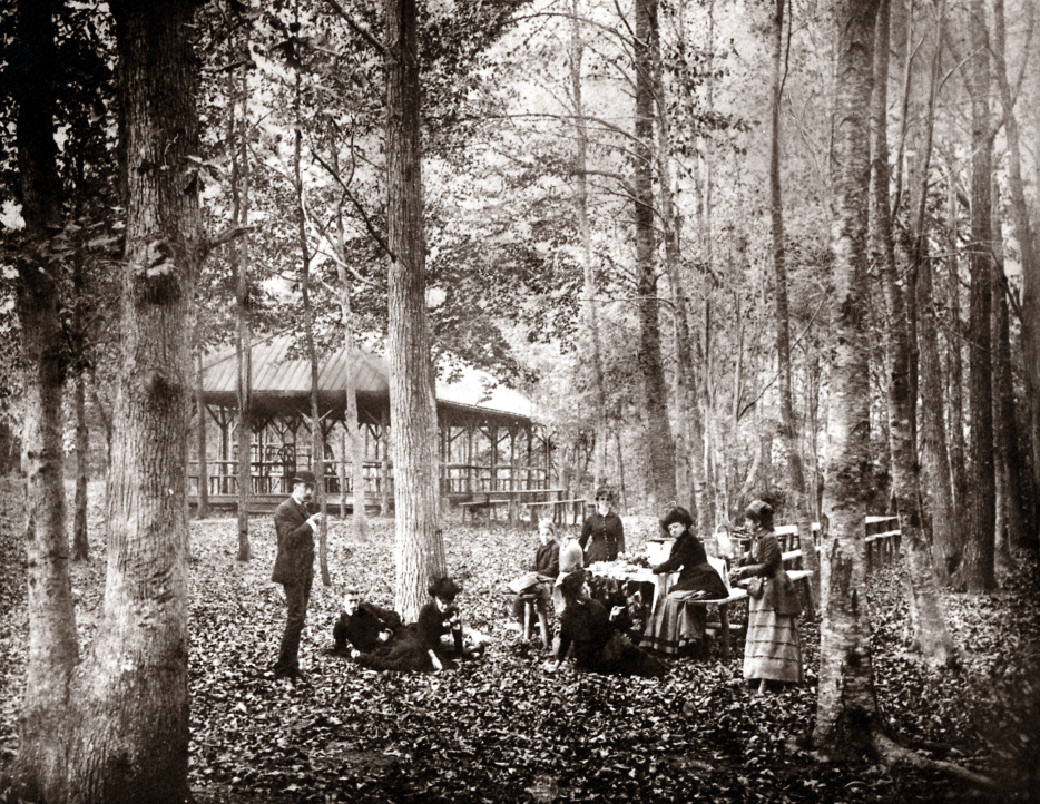 In the 1800's, the hill was a great spot for Roslyn families to come picnic and enjoy the views. Here we see a family enjoying a beautiful day atop the hill (possibly the prominent Roslyn Godwin family, descendants of William Cullen Bryant).