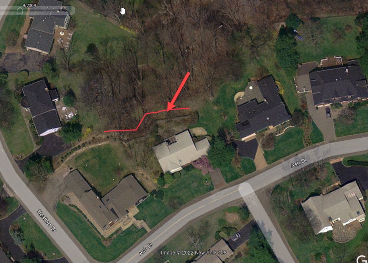 Very recently, The Roslyn Landmark Society rediscovered an approximately 500-foot section of the main drive hidden in plain sight behind the homes on Mimosa Drive. The walls most clearly visible in the winter months when the foliage no longer hides them.