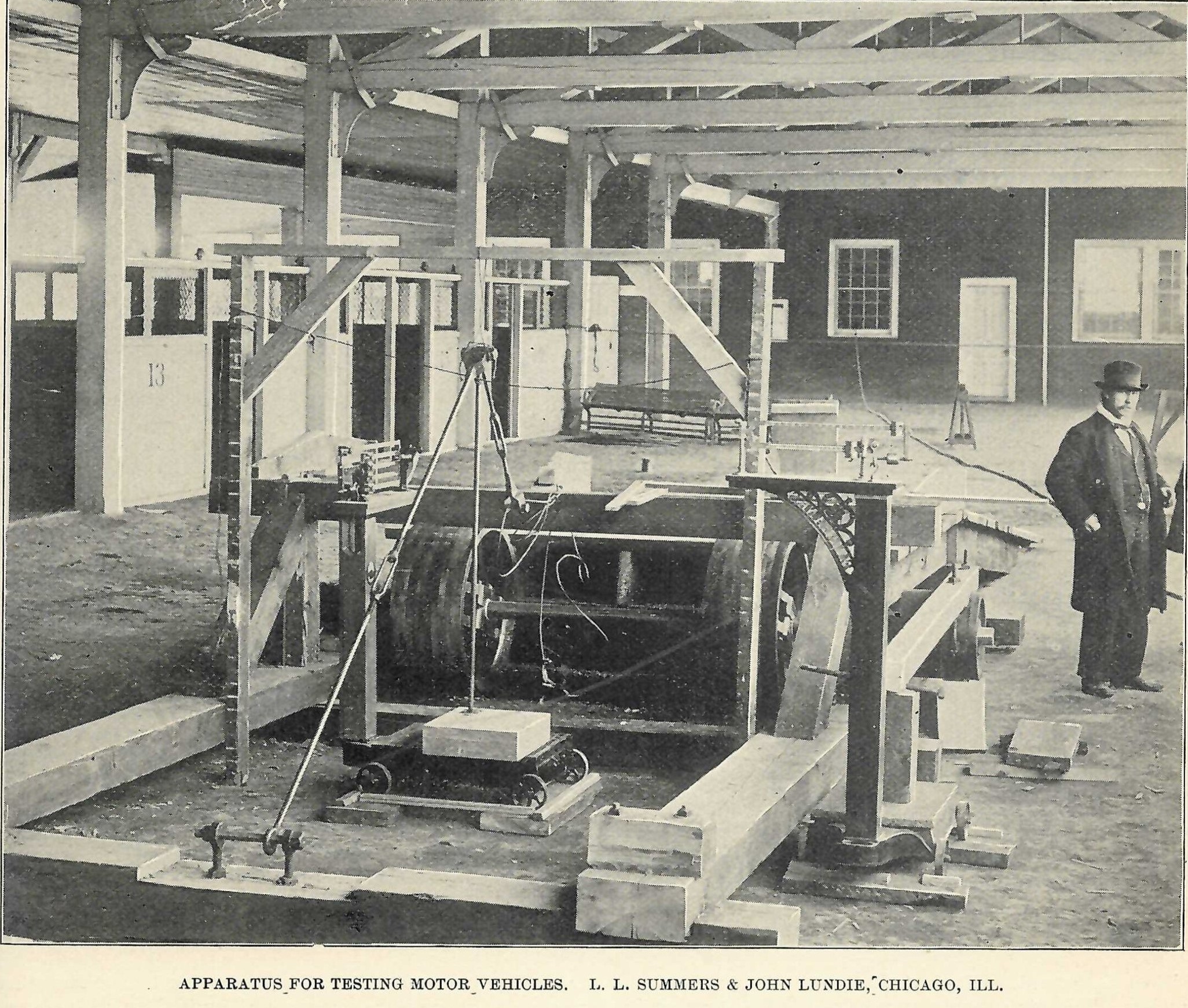 This 1895 Horseless Age photo of the Chicago race chassis dyno clearly shows the rollers that most modern auto enthusiasts would recognize.