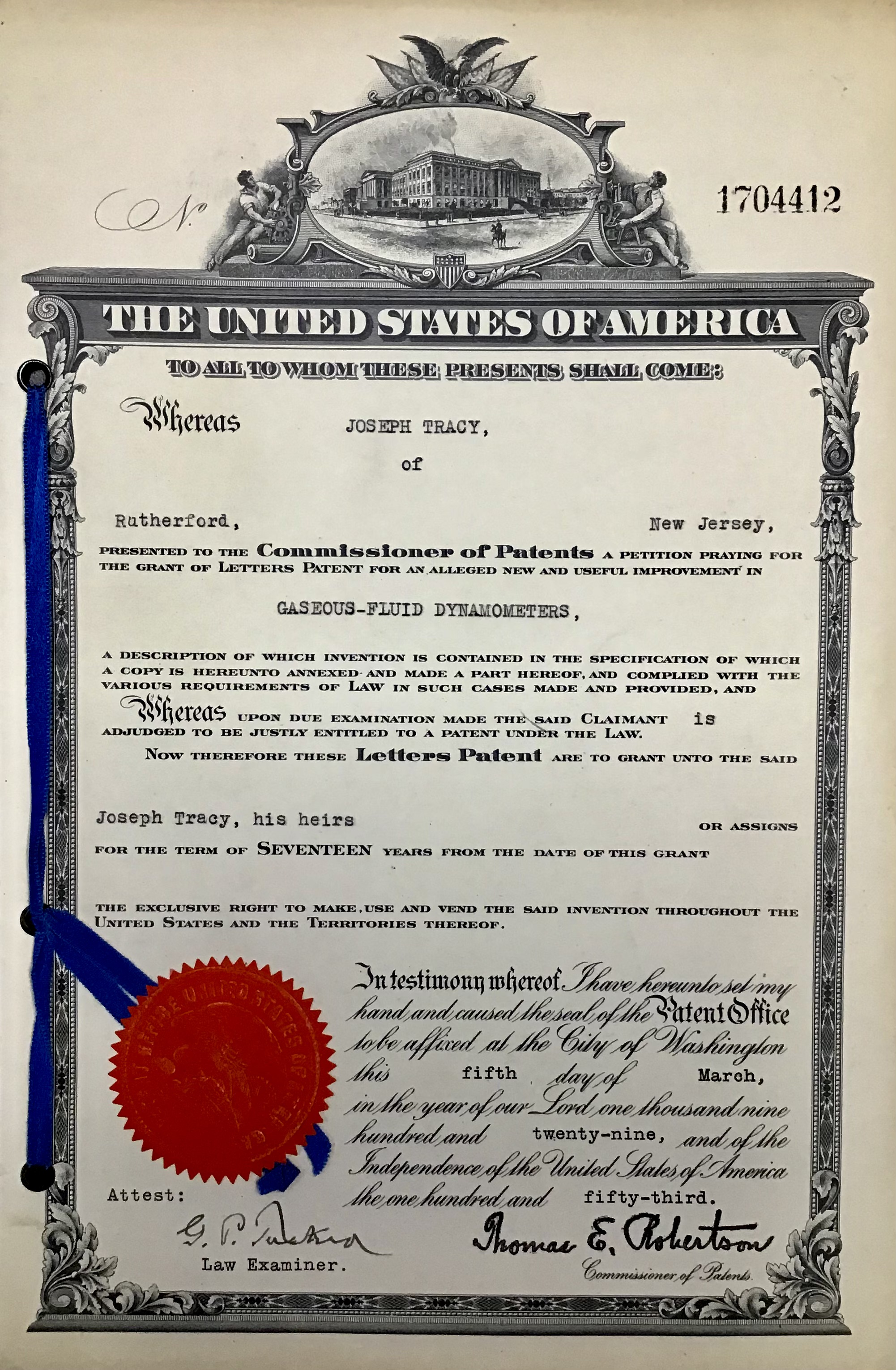 Patent #1704412 March 5th, 1929