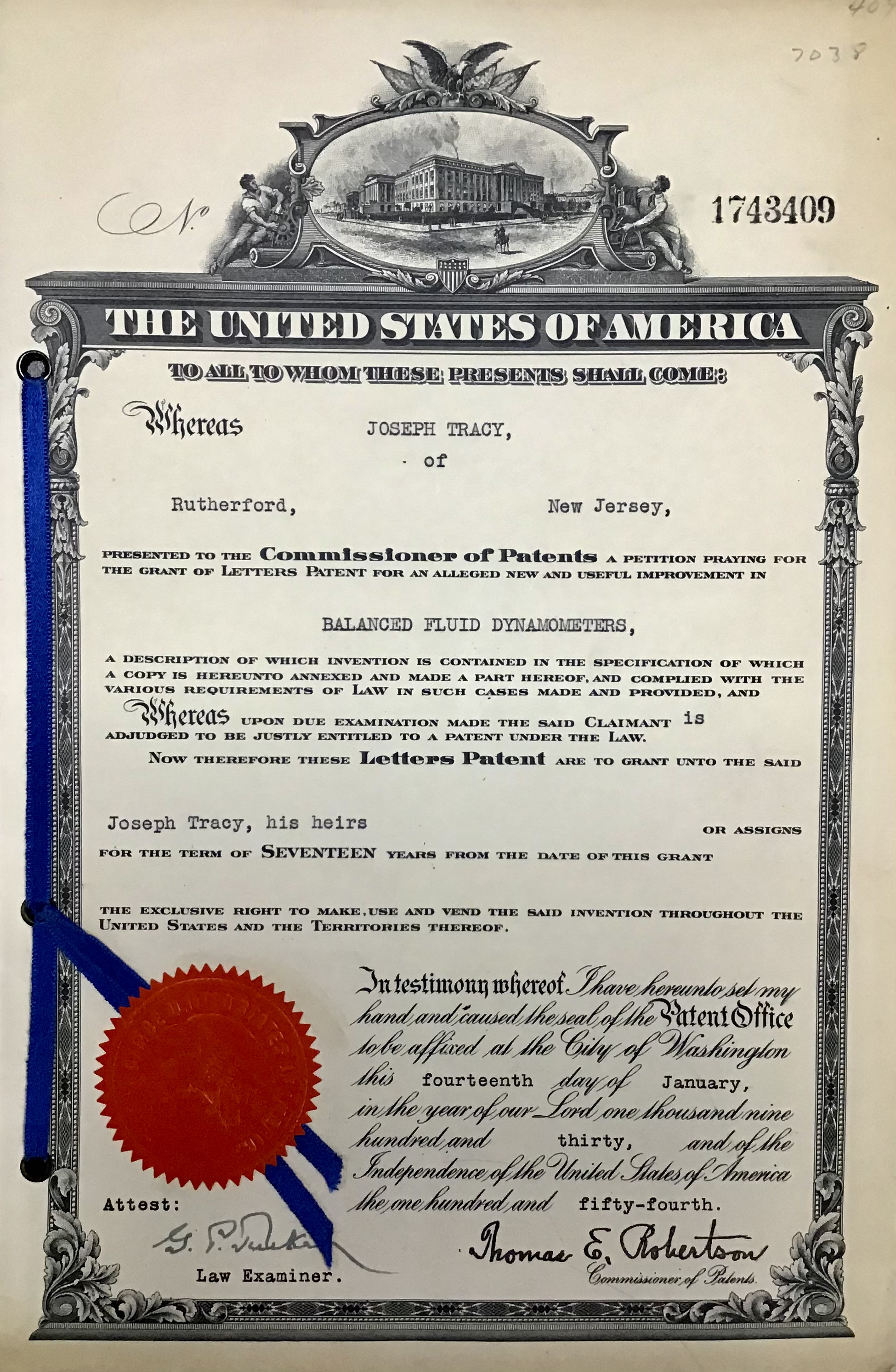 Patent #1743409 Jan. 14th, 1930