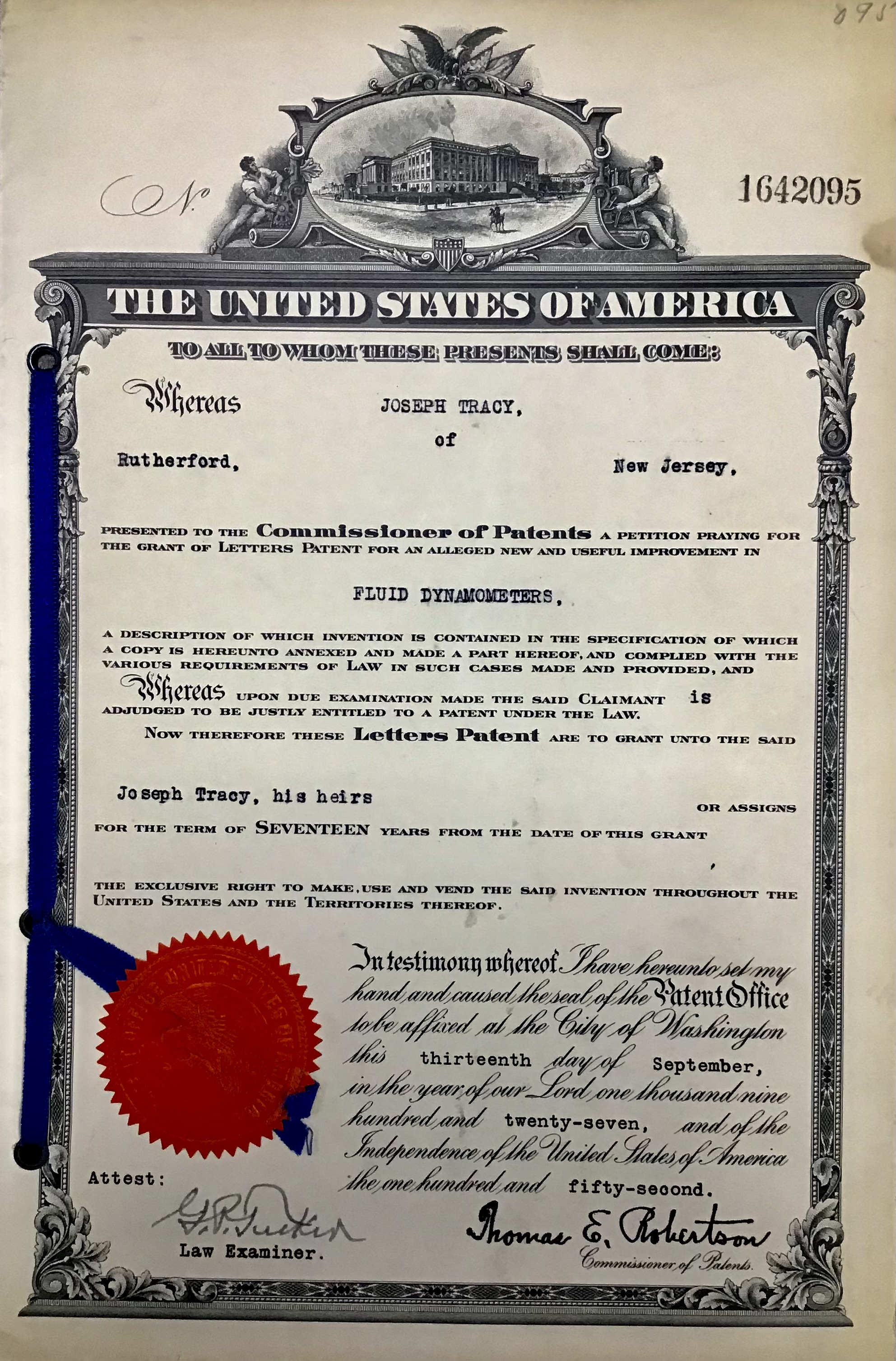 Patent #1642095 Sept. 13th, 1927
