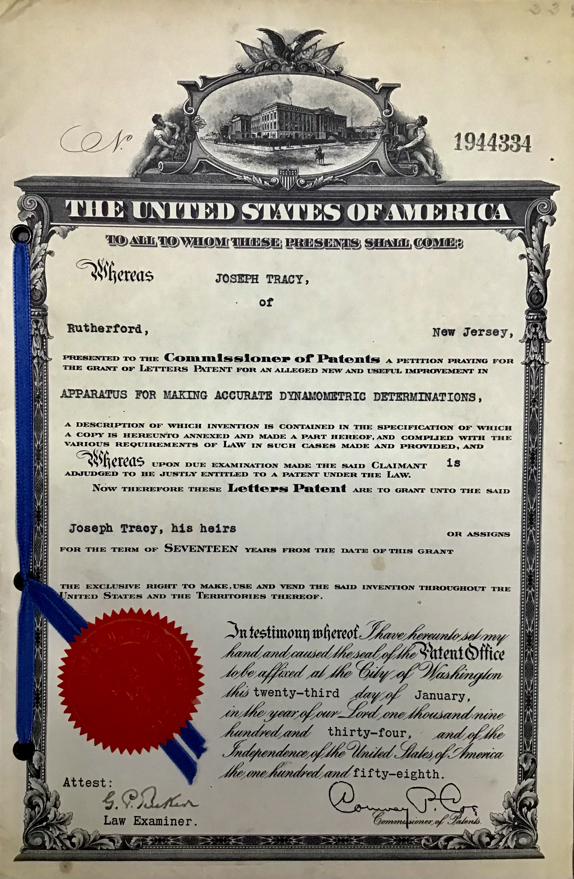Patent #1944334 Jan. 23rd, 1934