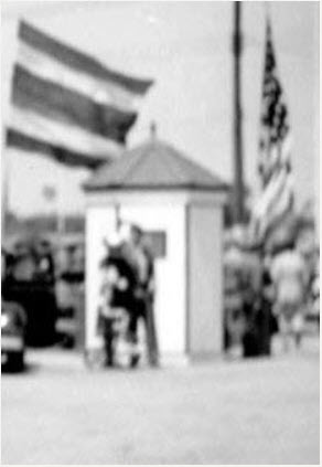 This kiosk/cabin stood until the parkway closed. This closeup is from a larger photo from the July 9th, 1938, opening day of the new walking/biking trail conversion of the parkway in Queens.