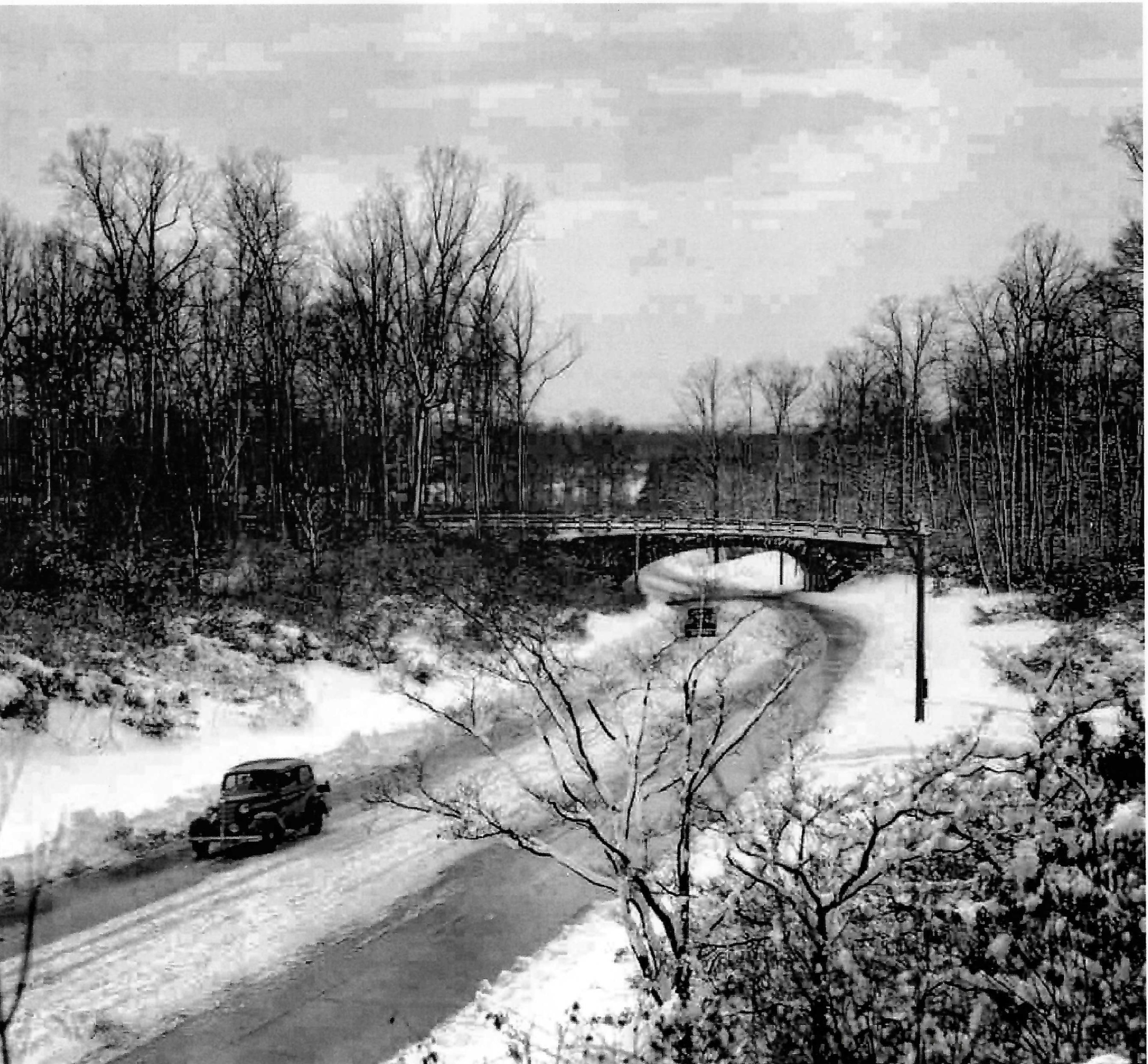 Bridge built in early 1930s (1931) by Robert Moses during the construction of the Northern State Parkway. Articles from The Nassau Daily Review of Dec. 8, 1931.